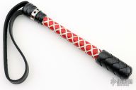 This Gambler Blackjack by DD Whips. Spring core black/red/white cowhide leather 12 strand covered blackjack with cowhide wrist strap. New from maker. Comes with COA.