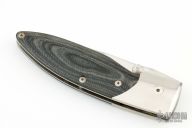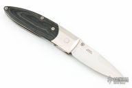 This linerlock folder by Boker is a Michael Walker design, it features a satin finished blade with satin finish stainless bolsters and liners with black G-10 scales. Nice lock up, blade seating and detent. Includes original metal case, box and paperwork. Has some light scuffs and scratches, otherwise excellent condition.