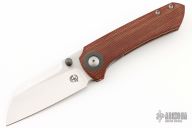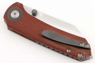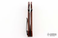 This Maverick S by Matthew Christensen features a satin finished blade with dual zirconium thumbstuds. The handle has a brown canvas micarta frame, inlaid titanium liner, zirconium pivot collars, backspacer and tip up clip. Comes with original cloth case and box. Excellent condition.