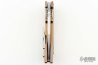 This Dominator Level 2 V4 by Darrel Ralph features a satin finished blade with notched thumbrest and flipper. The handle has a satin and anodized titanium frame with a titanium tip up clip and backspacer. The frame has a milled mokume inlay. Rides on bearings, nice detent, lockup and blade seating. Comes with original box, zippered case and COA. Has a few light scratches, otherwise excellent condition.
