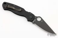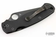 This Paramilitary 2 by Spyderco has a black clip point blade with thumb hole and notched thumb rest. Handle is black G10 with stainless steel liners and black stainless steel 4-way reversible clip. Comes with original box and papers. Has a couple light scuffs, otherwise Excellent condition.