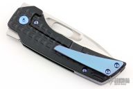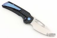 This Nymble Framelock Flipper by EMP EDC features a satin finished blade with notched tumbrest and flipper, and a thumbhole. The handle has a darkened tumbled and frag pattern milled frame, upgraded titanium hardware, backspacer and mokuti tip up clip. Rides on bearings, nice detent, lockup and blade seating. Comes with EMP EDC box and papers. Excellent condition. 3rd production run #376
