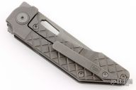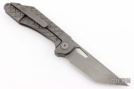 This Tripper by Jason Grant features a stonewashed tanto style blade with a notched thumbrest and flipper tab.  The handle has a stonewashed milled titanium frame with a matching tip up pocket clip.  Includes a zippered case.  Excellent Condition.