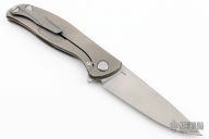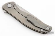This Model 95 framelock flipper from Shirogorov has a flat ground and tumbled blade with a milled and tumbled titanium frame with matching tip up clip. Excellent lockup, crisp detent, and perfect seating. Comes with original box and papers. Excellent condition.