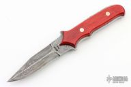 Limited to a serialized quantity of 1000 pieces this one is #0760, the Buck 970 Damascus Dagger features a 3.25" full tang damascus steel blade.188" blade depth, and .832" bladestock. Bahama Cherrywood scales with a generous finger grooves add to the overall esthetics of the beautiful knife. Display with pride with the included glass topped wooden display case and certificate of authenticity. Comes with original box and papers. Excellent condition.