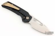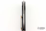 This Nymble Framelock Flipper by EMP EDC features a satin finished blade with notched tumbrest and flipper, and a thumbhole. The handle has a darkened tumbled and frag pattern milled frame, stain titanium hardware, anodized titanium backspacer and tip up clip. Rides on bearings, nice detent, lockup and blade seating. Comes with EMP EDC box and papers. Excellent condition. 2nd production run #083