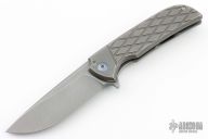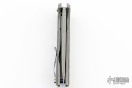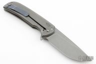 The N-TAC flipper from Ferrum Forge features a tumble finished blade with swedge and flipper. The has handle has a milled titanium frame with a anodized titanium tip up pocket clip.  Includes a padded zippered case.  Has some light scratches otherwise the knife is in excellent condition.