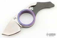 This Prototype Cool by Max Knives features a chisel ground satin finished tanto blade with friction folder style opening. The handle has an anodized titanium ring with carbon fiber handle. Comes with kydex neck sheath, velcro case and paracord. New from maker at the 2024 Blade Show Texas.