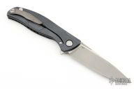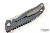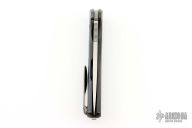 This Hati by Shirogorov Knives features a drop point tumble finished blade with a notched thumbrest and flipper. The handle is comprised of a carbon fiber and anodized titanium frame over a titanium backspacer with recessed lanyard bail and 3D machined titanium pocket clip is positioned for right hand, tip up carry. Comes with Shirogorov hat. Has some light scuffs and scratches, great condition otherwise.