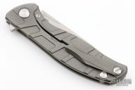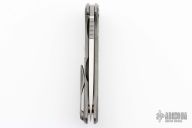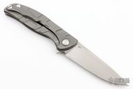 This Model 95 framelock flipper from Shirogorov has a flat ground and tumbled blade with a milled and tumbled titanium frame with matching tip up clip. Excellent lockup, crisp detent, and perfect seating. Excellent Condition.