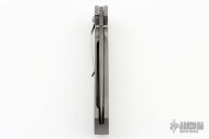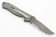 This MPF-1 by Mission Knives features a bead blasted partially serrated blade with notched thumbrest and dual thumbstuds. Milled and bead blasted titanium frame with tip down titanium clip, lanyard hole at the butt. Excellent condition.  Includes the original box.