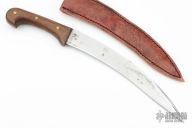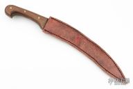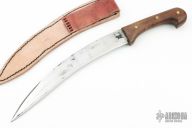 This Fairbairn's Cobra by Plowshare Forge features a hand forged blade with sharpened top edge, .177" blade stock and 1.418" blade depth, full tang construction with a dark wood grip and brass pins. Comes with a brown leather sheath. Rustic looking, but that is intended. Excellent condition.