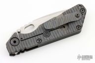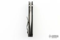 This SNG framelock folder by Mick Strider features a drop point blade and a black aluminum and flamed titanium frame and tip up titanium clip. Includes Hinderer "Lock Bar Stabilizer" for maximum reverse lock retention. Nice detent, lockup and blade seating. Excellent Condition.