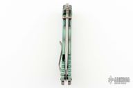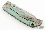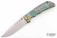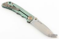 This Harsey framelock folder by Spartan Blades features a stonewash finished drop point blade with dual thumbstuds and a notched thumbrest. The handle has an anodized titanium frame with a laser engraving a tip up titanium clip and filler tab. Has nice detent, lockup, and blade seating. Excellent condition. Comes with original box.