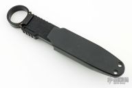 The concept allows the user to carry a 4" fixed blade with part of the blade retracted in the handle and only 1.5" exposed. The sheath holds onto the tip of the blade and as the knife is pulled out, it extends the blade. The patent pending mechanism locks the blade open. When the lock is disengaged the blade slides back in the handle and the knife can be put back in the sheath (it needs to be done in this order for a safer and trouble free re-holstering). The sheath features a clip which allows the user to secure it to garments and gear. The system allows the user to carry a 4" fixed blade in a compact package. The aluminum ring can be placed vertically or horizontally or removed completely (patent pending).