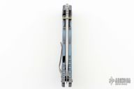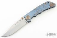 This Harsey framelock folder by Spartan Blades features a stonewash finished drop point blade with dual thumbstuds and a notched thumbrest. The handle has an anodized titanium frame with a laser engraving a tip up titanium clip and filler tab. Has nice detent, lockup, and blade seating. Excellent condition. Comes with original box.