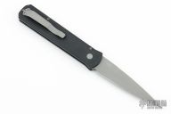 This Godfather by Pro-Tech features a bead blasted dagger style blade. The handle has a black aluminum frame with bead blasted hardware and black stainless steel tip up clip. Excellent condition.