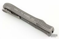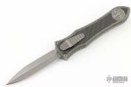 This knife is a Deadlock Model C by Grant and Gavin Hawk. It has a double-edged stonewashed blade. The handle has carbon fiber inlays in the stonewashed titanium frame with a tip down spring clip, titanium. The thumb slide on the handle is also titanium and handle has a titanium overlay. . Comes with a cloth pouch. Grant and Gavin Hawk set out to create a double action OTF with no blade play.... They did it, NO blade play. Comes with tool and an embroidered taco pouch. Excellent Condition.