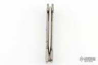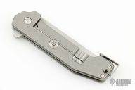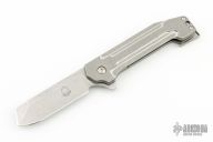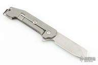 This GMT Razel GT Mid-Tech by Jon Graham features a stonewashed blade with flipper. The handle has a stonewashed titanium frame with matching tip up tail clip, satin finished lockbar stabilizer. Rides on bearings, nice detent, lockup and blade seating. Comes with a zipper case and patch. Excellent condition.