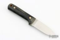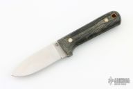 This knife by LT Wright features a satin finished flat ground blade with .124" blade stock and 1.077" blade depth, full tang construction. The handle has green micarta scales with corby bolts. Comes with original box and brown leather sheath. Excellent condition.