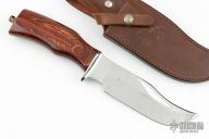 This knife from Colt features mirror polished blade with integral guard, .345" blade stock and 1.622" blade depth, hidden tang construction. The handle has a dymondwood grip with a brass tang nut with lanyard hole. Comes with a brown leather sheath. Has some patina and light scratches, otherwise good condition.