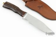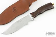 This knife from Colt features mirror polished blade with integral guard, .340" blade stock and 1.639" blade depth, hidden tang construction. The handle has a dymondwood grip with a brass tang nut with lanyard hole. Comes with a brown leather sheath. Has some light scratches, otherwise good condition.