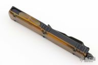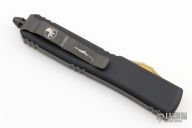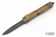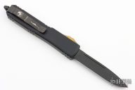 This Ultratech OTF automatic by Microtech features a S/E DLC finished blade with a standard edge. Black aluminum frame with Ultem top, button, DLC hardware and stainless steel clip. Glass breaker. Dated 07/2023. Comes with original box and papers. Excellent condition.