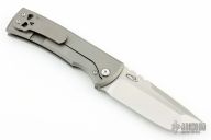 This Chaves Ultramar Redencion drop point features a satin finished blade. The handle is made up of stonewashed titanium, skull pocket clip (positioned for tip up carry), and a matching titanium backspacer. Comes with original box and an extra regular titanium pocket clip. The knife opens with the use of Lee Williams' Kick Stop flipper.  Includes the original box, and extra clip. Exellent condition.