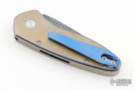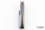 This custom Sprint side-opening automatic by Pro-Tech Knives features a Vegas Forge Spirograph Pattern Damascus blade.  The handle has an orange peel finished and anodized titanium frame with a matching tip up pocket clip.  Mother-of-pearl push button. Includes the original box and papers. Has a couple light scuffs and scratches, excellent condition otherwise.