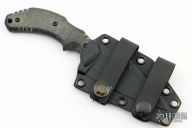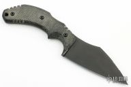 This Foreigner by Bastinelli Knives features a black pvd blade with swedge and notched thumbrest, .160" blade stock and 1.325" blade depth, mortis tang construction. The handle has custom micarta scales. Comes with a kydex sheath with belt loop. Has a few light scuffs, otherwise excellent condition. Comes with original box