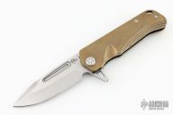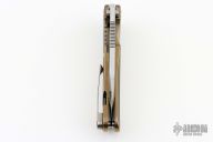 This Proxima by Medford Knife and Tool featured a stonewashed spear point blade with fullers and a notched flipper tab. The handle is composed of anodized titanium and a stonewashed tip up pocket clip and a lanyard hole. Includes the original box, hard case and papers. Excellent Condition.