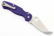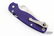 This Paramilitary 2 from Spyderco has a satin finished clip point blade with thumbhole and notched thumb rest. Handle is blue G10 with stainless steel liners and stainless steel 4-way reversible clip. Excellent condition. Comes with original box, clip and papers. Currently wearing a Lynch NW deep carry clip.