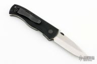 This CQC-7A by Emerson Knives has a stonewashed blade with notched thumbrest and a thumbdisc. The handle has black G-10 scales, titanium liners, black barrel spacers, tip up black stainless steel clip. #2408. Comes with original box and papers. Excellent condition.