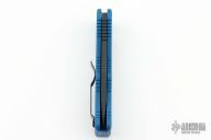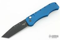 Very hard to find automatic with black coated tanto blade and Mill Bastard patterned blue aluminum handle. Strong, quick action. Tip up carry clip. Has a couple light scuffs, otherwise excellent condition. Extremely hard to find.