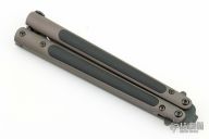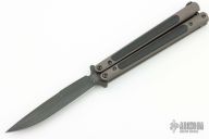 This Model 42-01 Balisong by Benchmade features a black boron carbide spear point blade with swedge. The handles are black aluminum with black G-10 inlays with spring T latch on pommel. Marked "Limited Edition 023/100" on blade. Includes a Benchmade box and papers. A rare and hard to find piece. Excellent condition.