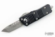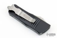 This Troodon Mini OTF automatic by Microtech knives features a stonewash finished tanto blade, and a black aluminum handle with tip down carry. Glass breaker. S/N 2150. Dated 05/2021. Comes with original box and papers. Excellent condition.
