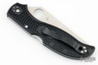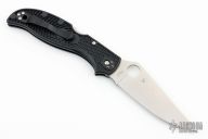 This Spyderco Stretch 2 XL has a plain edged satin finished blade with thumbhole and notched thumbrest. The handle has black FRN scales, stainless liners and backspacer and a black stainless 4-way reversible Lynch clip. Includes the original box. Excellent condition.