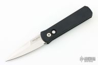 This 721 Godson from Pro-Tech Knives features a satin finished blade with swedge. The handle has a black aluminum frame with satin hardware and black tip up clip. Comes with original box and papers. Excellent condition.