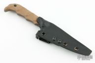 This Senator by Half Face Blades features a dark stonewashed blade with textured thumbrest, .139" blade stock and .773" blade depth, full tang construction. The handle has G-10 scales. Comes with kydex sheath with belt clip. Excellent condition.