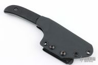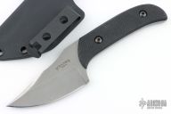 This Percy by Kramer Knives features a tumbled clip point blade with a notched thumbrest and sharpened top edge, .126" blade stock and 1.352" blade depth, full tang construction. The handle has textured black G-10 scales. Comes with a kydex sheath with a Mummert Clip. Excellent condition.