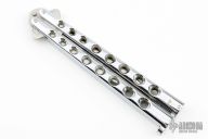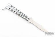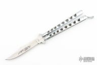 This Balisong by Parker Cutlery Company features a satin finished blade. The handles are chrome plated. Has some scratches, otherwise good condition.