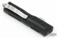 This Scarab II Gen III by Microtech features a stonewash finished blade with fullers. The handle has a black aluminum handle with non-slip inserts, a single glass breaker and tip down stainless steel clip. Comes with original box and papers. Excellent condition.