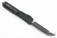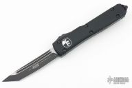 This Ultratech OTF automatic by Microtech features a T/E black blade. Black aluminum frame with a tip down stainless steel clip. Dated 07/2021 and S/N 208044. Comes with original box and papers. Has a couple light scuffs and scratches, excellent condition otherwise.