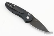 This Sprint by Pro-Tech has a black blade and a black aluminum handle with a carbon fiber inlay on one side. Black stainless steel clip. Serial number 914 PR5. Comes with original box and papers. Has some scuffs, scratches and dings, great user condition otherwise.