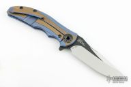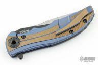 This 0606CF by Zero Tolerance is an RJ Martin design, it features a two-tone blade with satin grinds and black flats, notched thumbrest and flipper. The handle has a two-tone anodized titanium frame with carbon fiber inlays, black pivot, carbon fiber backspacer, tip up two-tone anodized titanium clip with hidden screws. S/N #0320. Excellent condition. Comes with original box and papers.