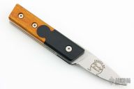 This is a rare collectable Police Issue small auto with satin blade of just 1 7/8" that may be legal in California.The handle features plastic bolsters with wood scales over steel liners.  Plastic backspacer. Strong opening action with trigger lever. Light scratches are visible on the blade and handle otherwise the knife is in excellent condition.