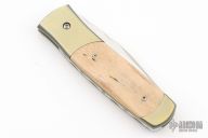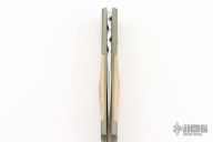 This Automatic by Z Custom Knives features a mirror polished drop point blade with file worked thumbrest. The handle is comprised of an anodized orange peel titanium frame with mammoth inlays and inlaid push button over a fileworked stainless steel backspacer. Has some light scuffs and scratches, otherwise great condition. Hard to find!