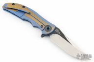 This 0606CF by Zero Tolerance is an RJ Martin design, it features a two-tone blade with satin grinds and black flats, notched thumbrest and flipper. The handle has a two-tone anodized titanium frame with carbon fiber inlays, black pivot, carbon fiber backspacer, tip up two-tone anodized titanium clip with hidden screws. S/N #260. Comes with original outer factory sealed box, original box and COA, New.