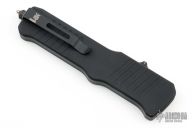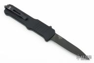 This Incursion has a black handle and a black bayonet blade. The Hogue Incursion is a large OTF automatic knife. It is constructed for hardcore tactical use. It has an ergonomic, aluminum handle with grooves to enhance grip. The out-the-front action is swift and reliable. The knife is finished off with a reversible, deep carry pocket clip and a glass breaker tip. 154CM blade holds a good edge and can handle hard use. Textured aluminum handle provides a reliable grip. Deep carry pocket clip and glass breaker. Comes with original box, sheath and papers. Has a couple light scuffs, otherwise excellent condition.