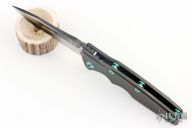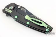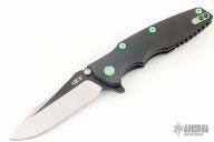 This 0392 from Zero Tolerance is part of their "Factory Custom" series. It features a black blade with swedge, dual thumb studs, notched thumb rest and flipper. The handle has a black titanium frame over anodized barrel spacers, screws and 3 way adjustable pocket clips. Includes original box and COA. S/N of 165. Includes original factory sealed box, original box and COA. New.